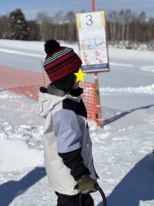 「前に来た時はお母さんと一緒に滑ったけど、今日は一人で滑る‼」