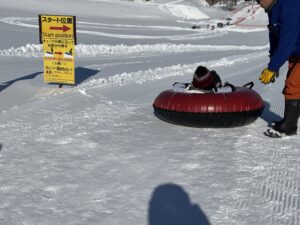 と話し、チューブに乗ってリフトに引っ張られながら出発。