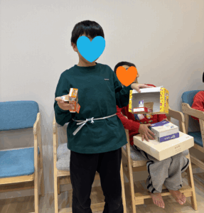 子ども達の想像力や制作力に驚かされた、廃材遊びでした😊